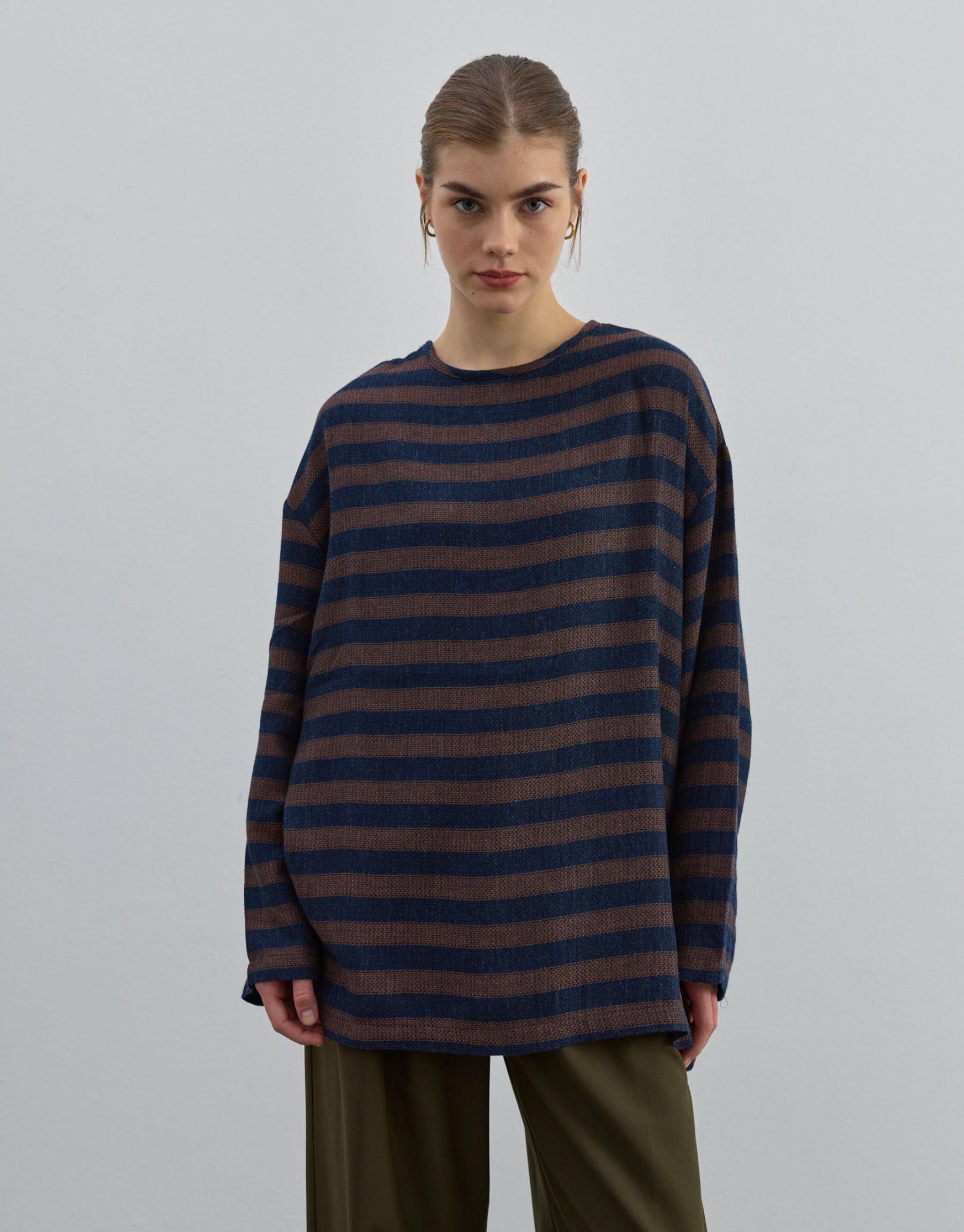 Modern çizgilerle tasarlanmış bu rahat ve şık ürün, günlük giyim koleksiyonunuzda vazgeçilmez bir parça olacak. %65 akrilik, %17 pamuk ve %18 polyester karışımından üretilen kumaşı, hem yumuşak hem de dayanıklı bir kullanım sunar. Geniş kesimi ve zarif çizgili deseniyle hem konforlu hem de şık bir stil sağlar.