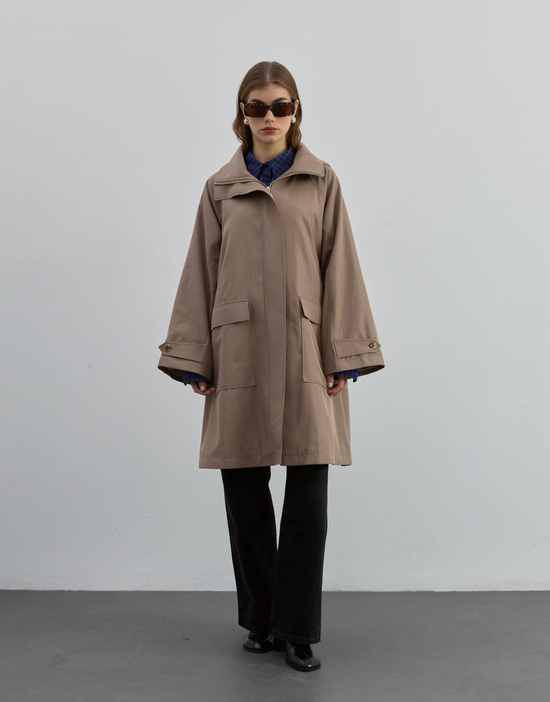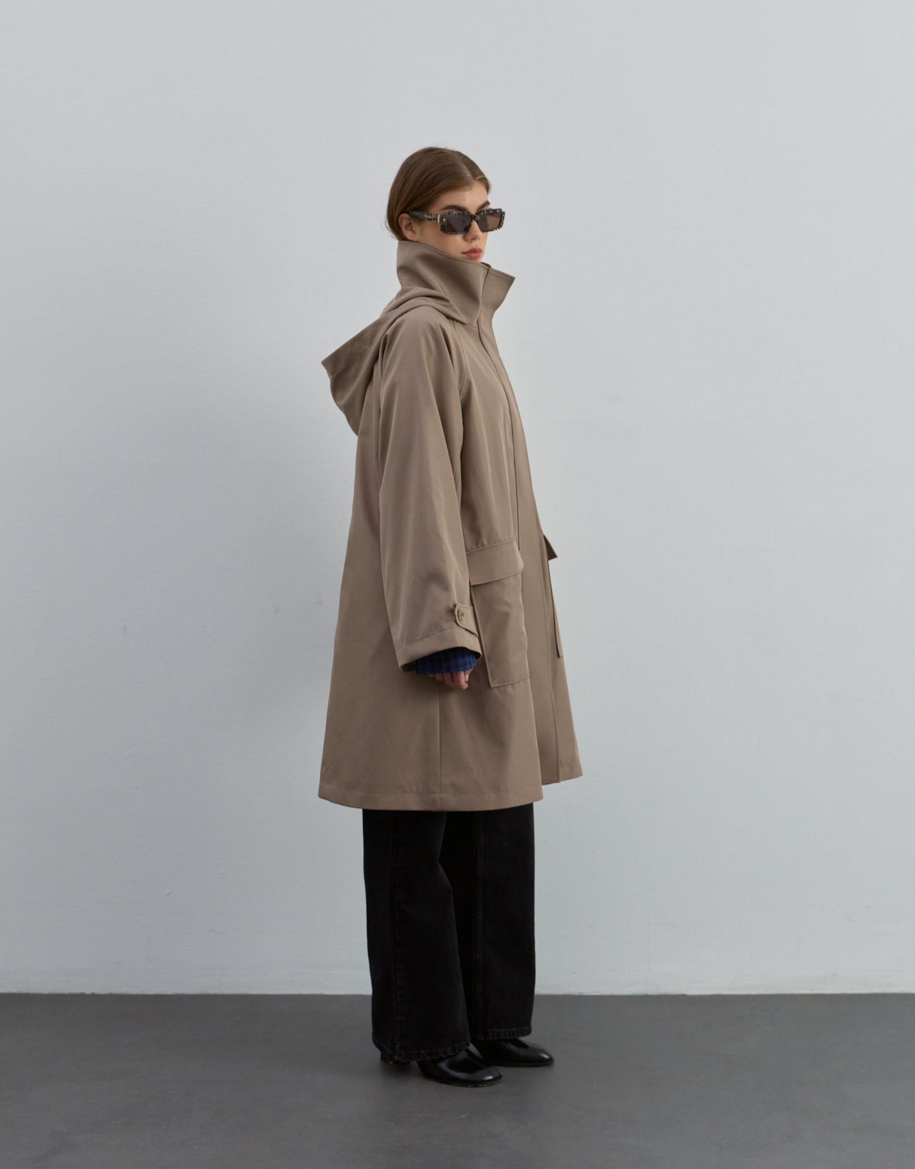 Kapüşonlu Fermuarlı Trenç Bej | qooq-up
