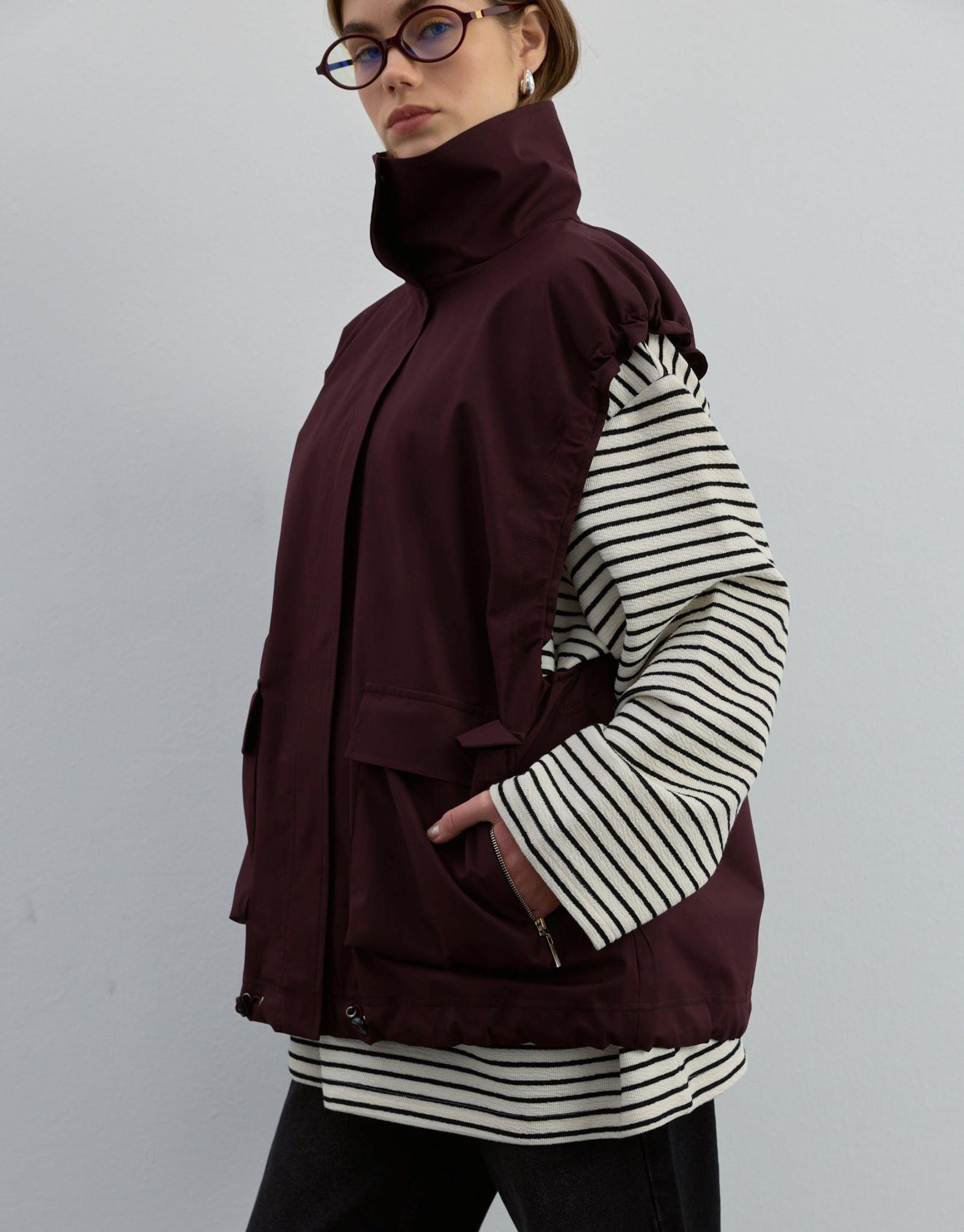 Modern ve işlevsel tasarımıyla öne çıkan kolu büzgülü yelek, şehir stiline güçlü bir dokunuş katıyor. %100 polyester kumaşı sayesinde hafif, dayanıklı ve dört mevsim kullanıma uygun bir yapı sunar. Geniş yakası ve rahat kesimi ile hem konforlu hem de modern bir silüet oluşturur.