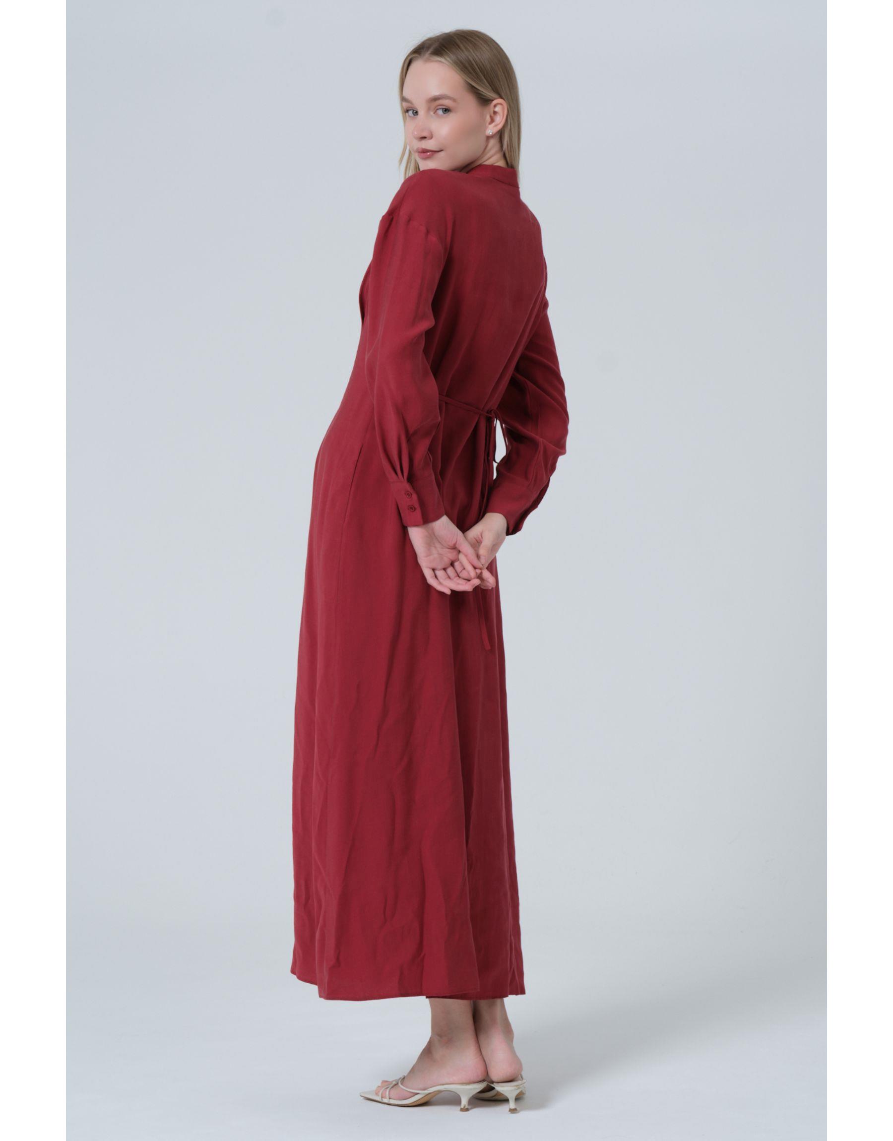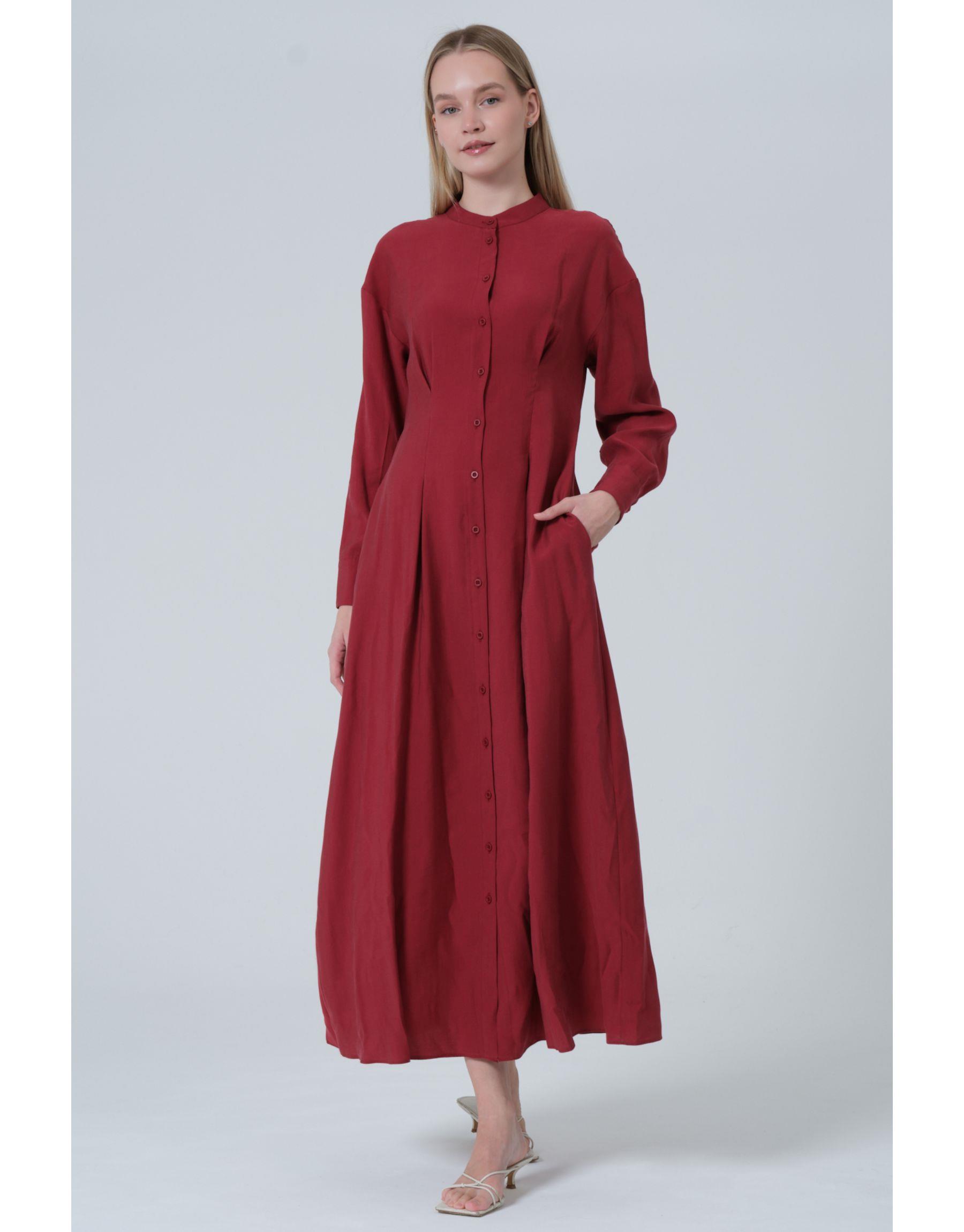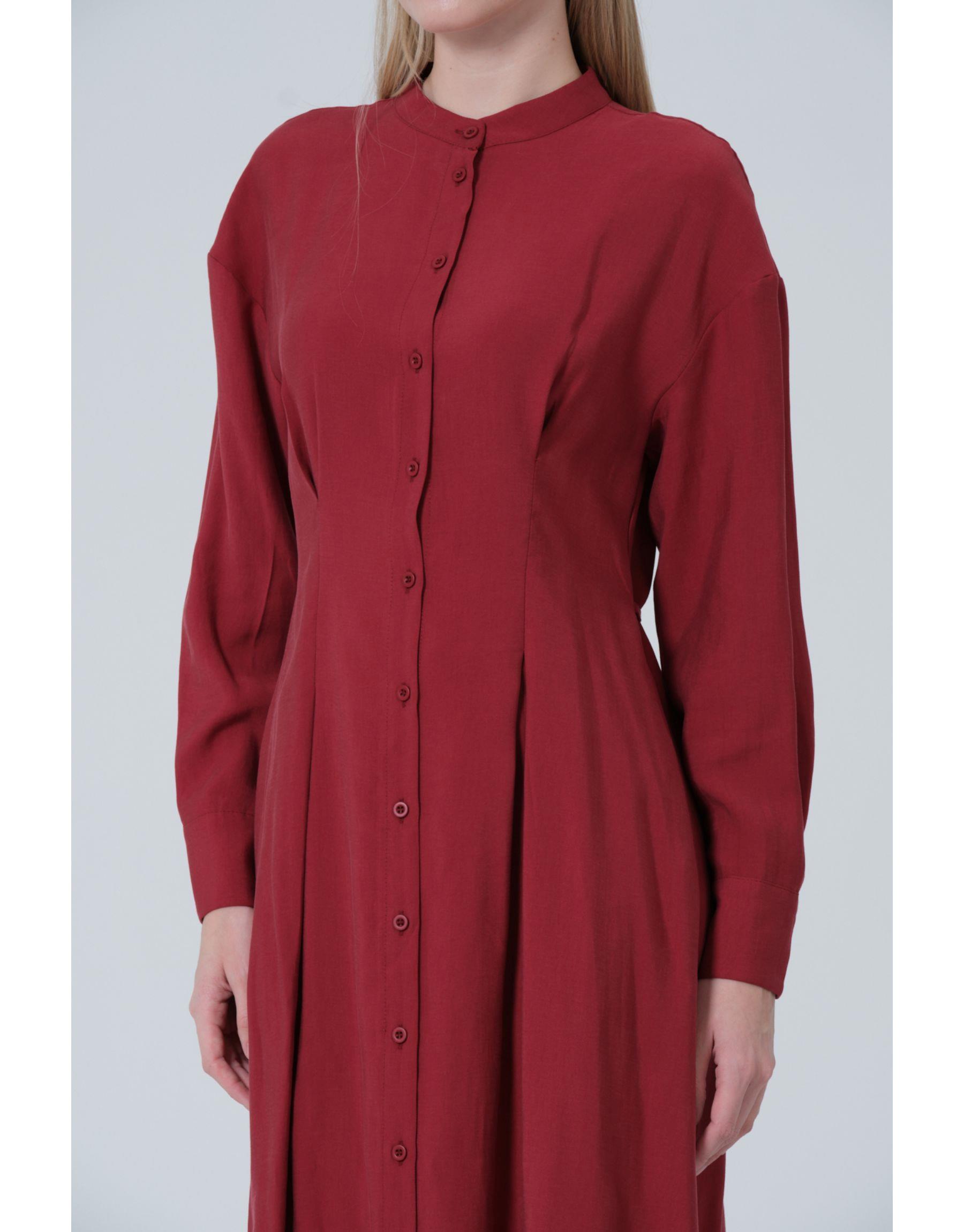 Pileli Elbise Bordo | qooq-up