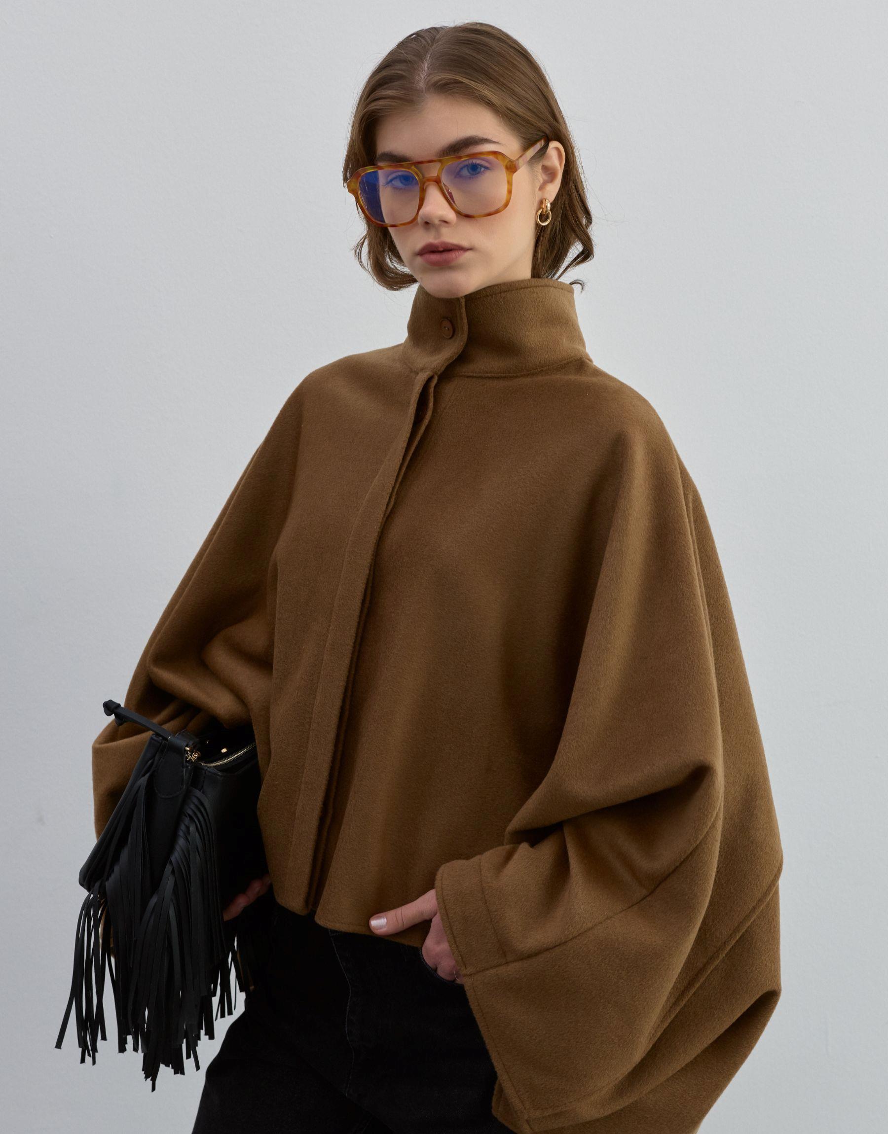 Yumuşak dokulu kumaşı, akıcı formu ve oversize silüeti ile rahatlığı ve şıklığı bir arada hissettirir. Yükseltilmiş yaka detayı soğuk havalarda ekstra koruma sağlarken, sade ama etkileyici tasarımı her kombine kolayca uyum sağlar.