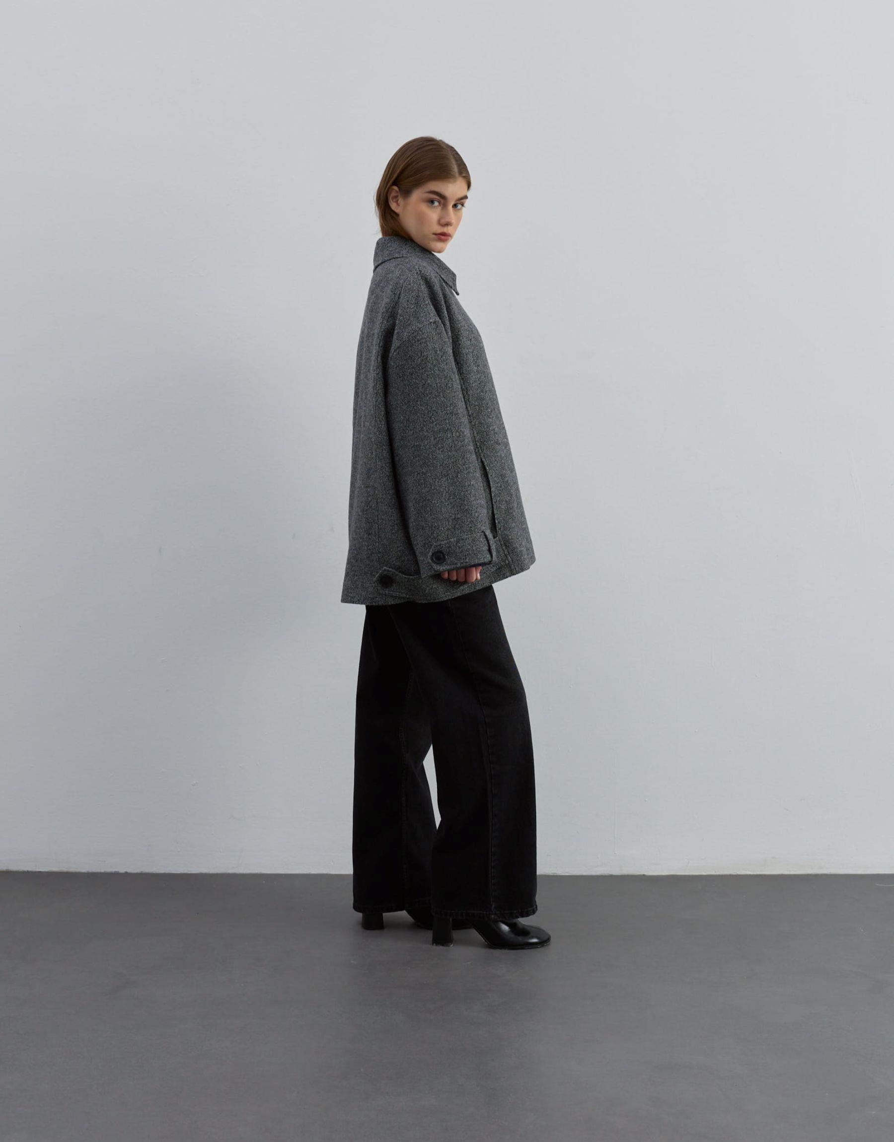 Kısa Kaşe Kaban Gri | qooq-up