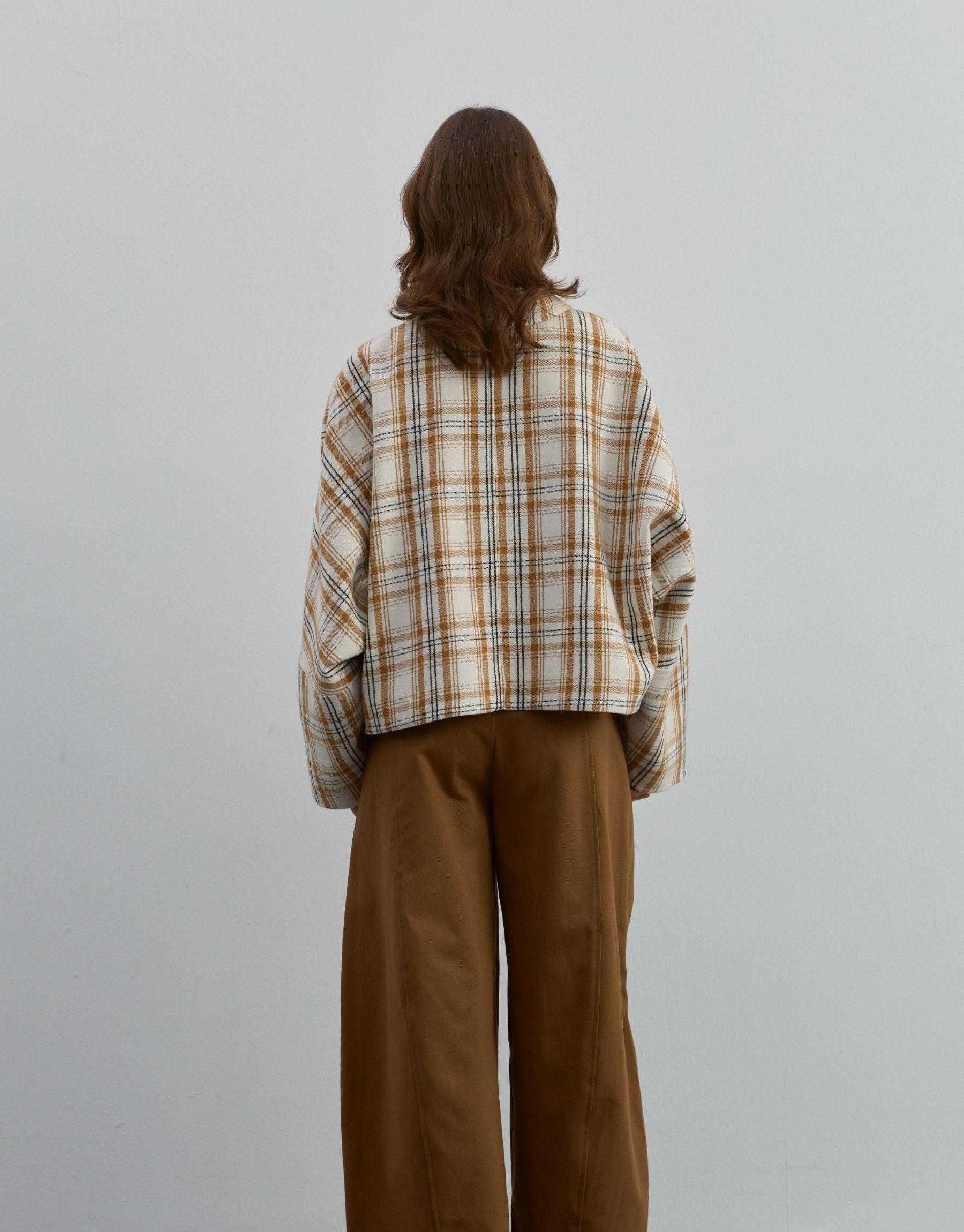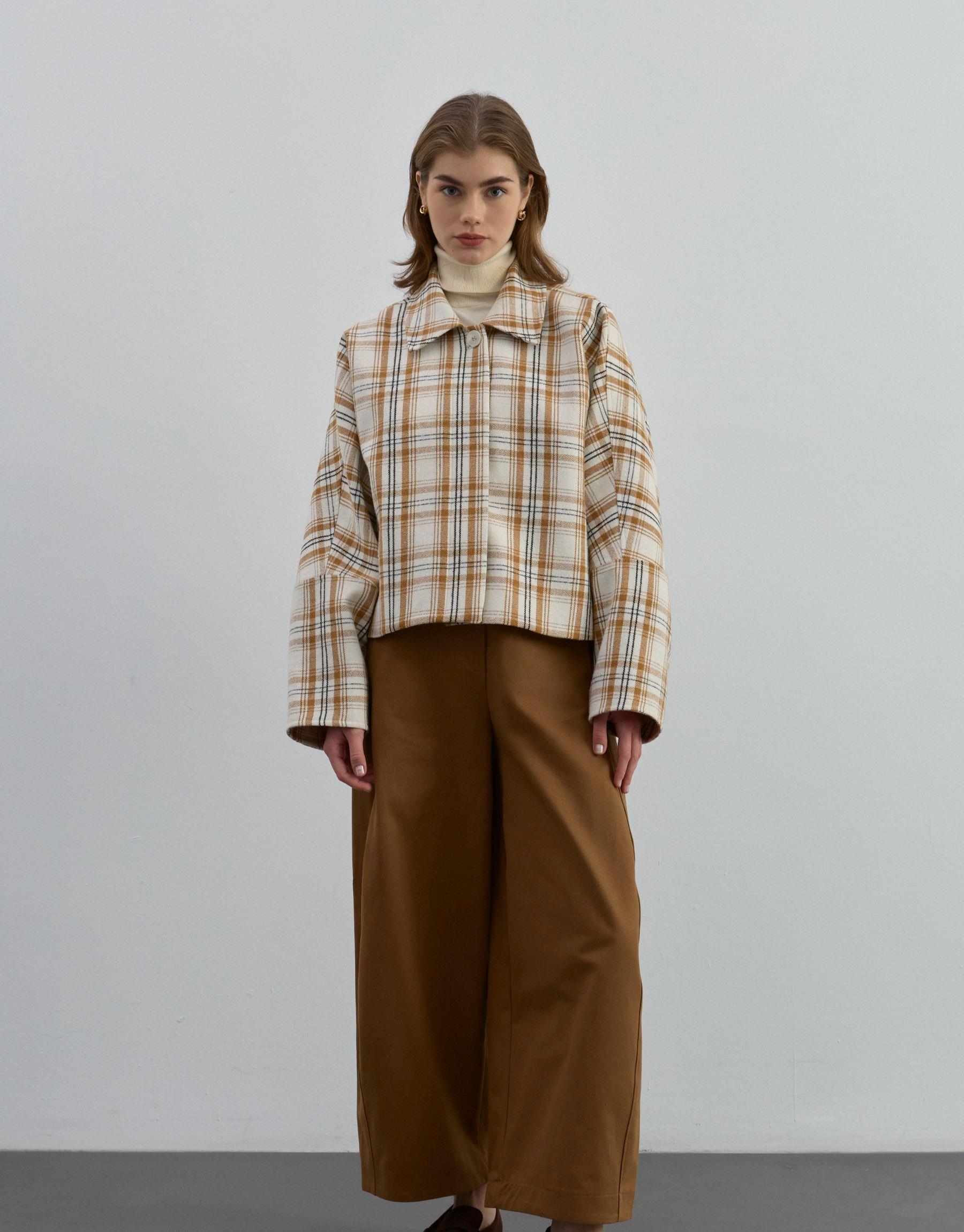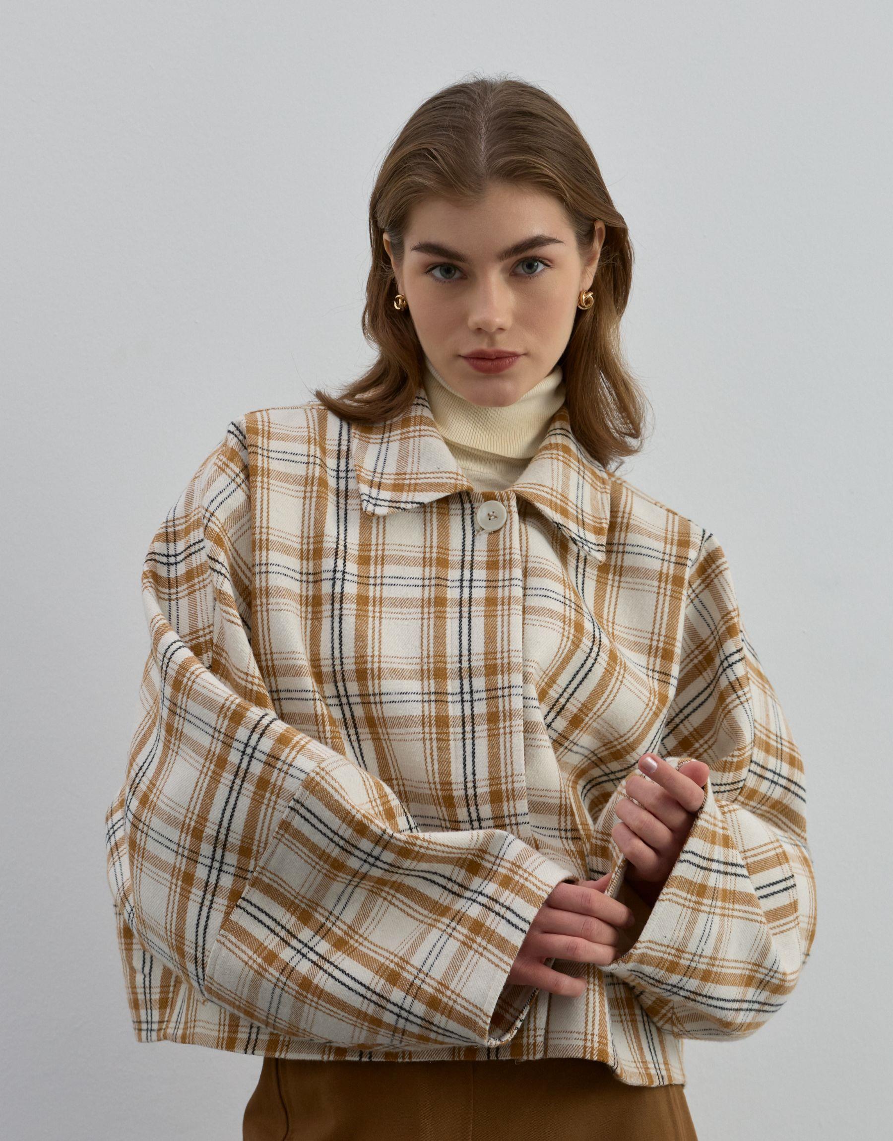 Yumuşak dokulu kumaşı konforlu bir kullanım sağlarken, oversize kollu yapısı cekete modern ve trend bir görünüm kazandırır. Sonbahar ve kış sezonu için ideal olan bu ekose crop ceket, katmanlı kombinlerde de rahatlıkla tercih edilebilir.