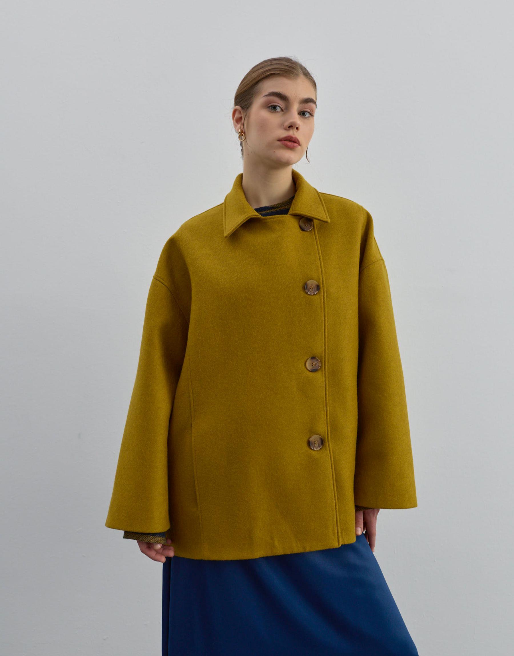 Kısa Kaşe Kaban Hardal | qooq-up