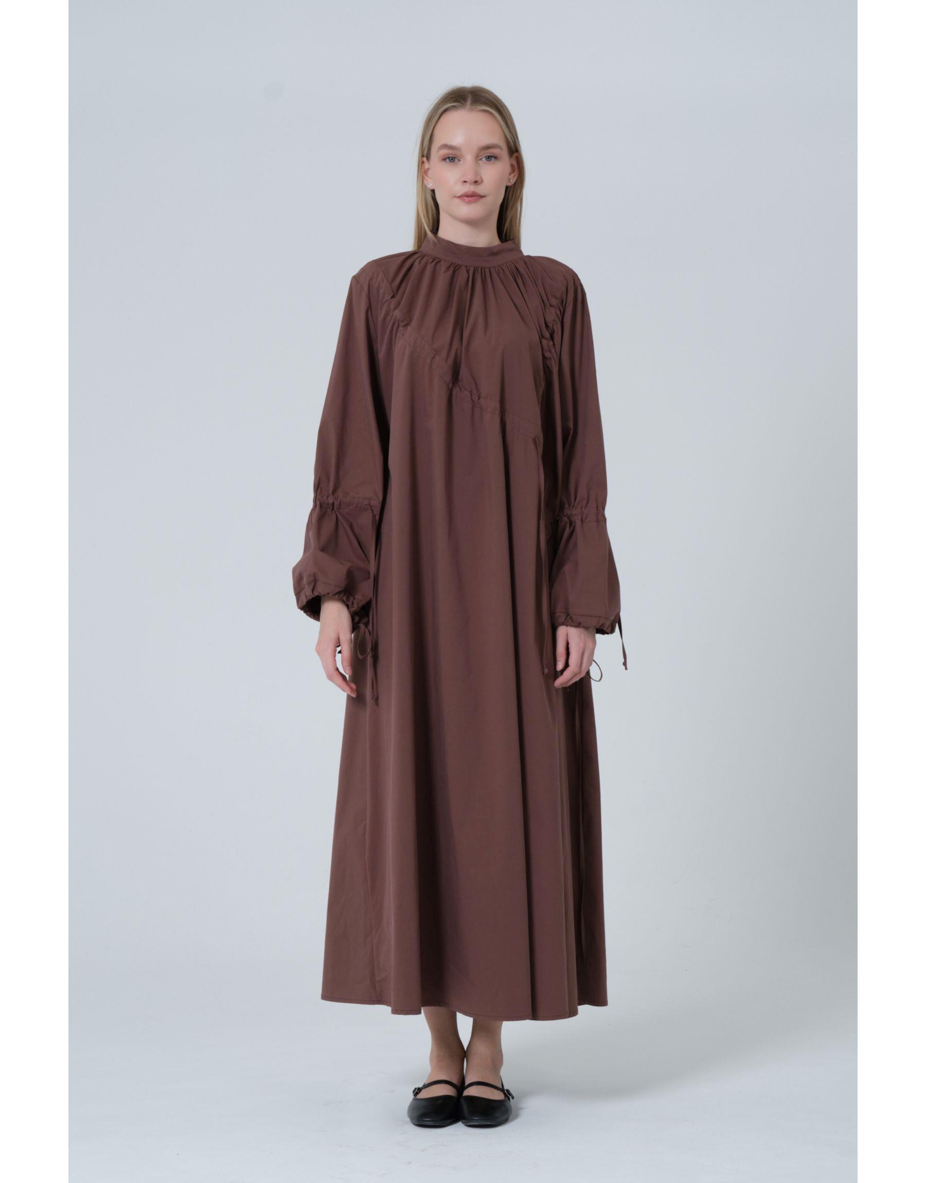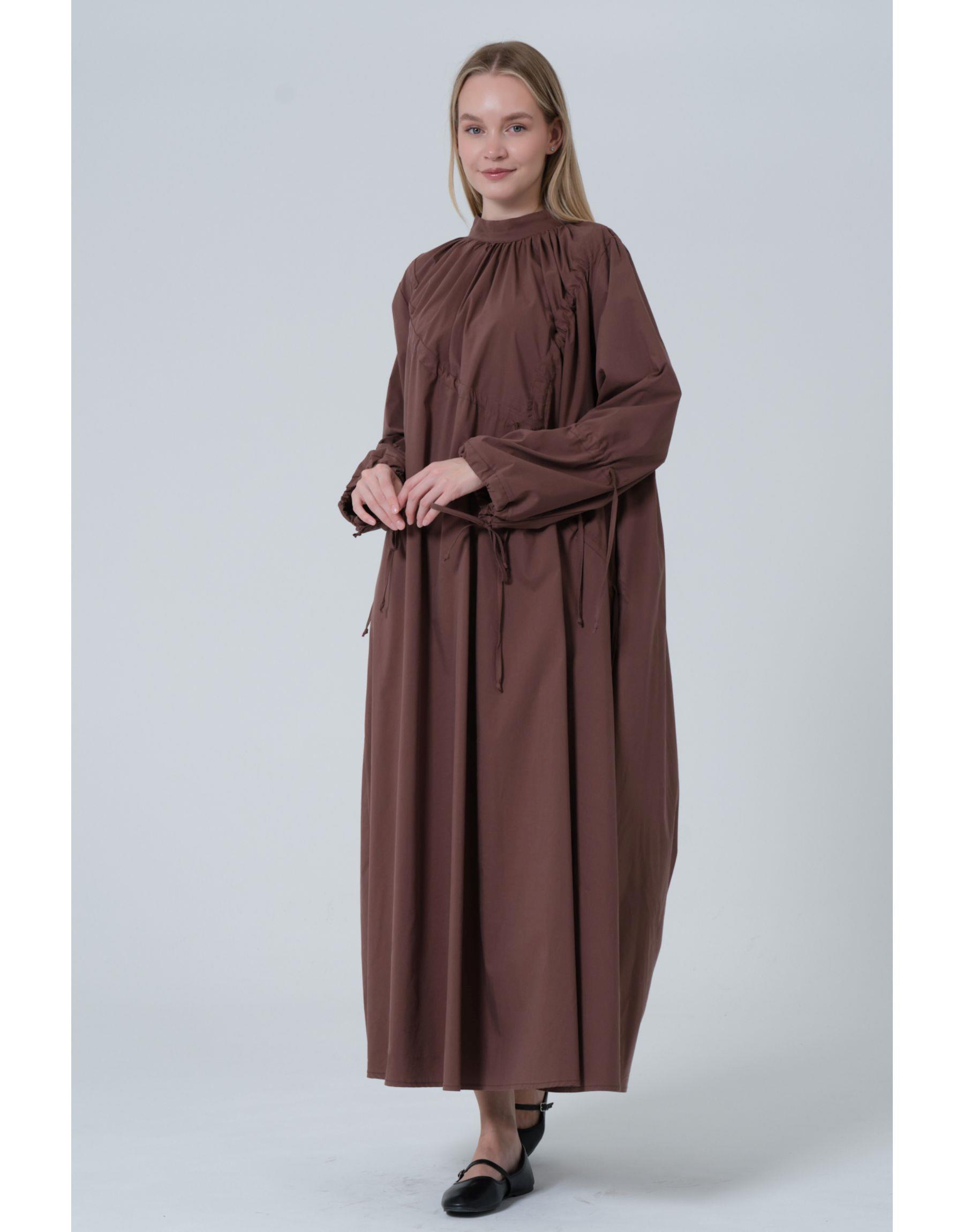 Büzgülü Elbise Kahve | qooq-up