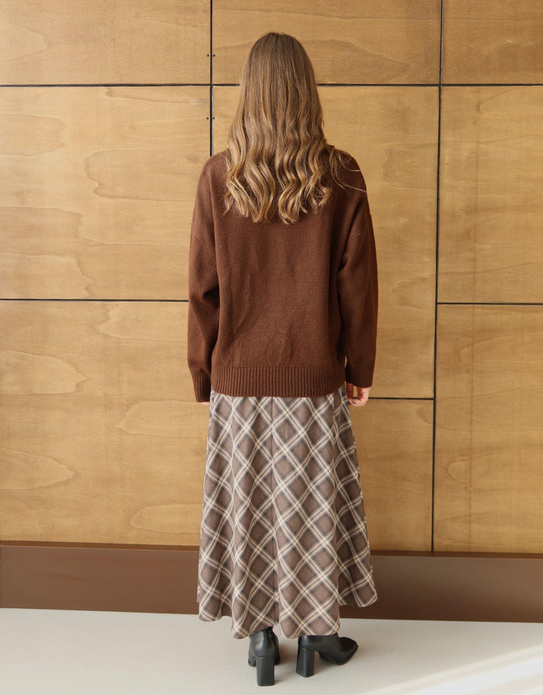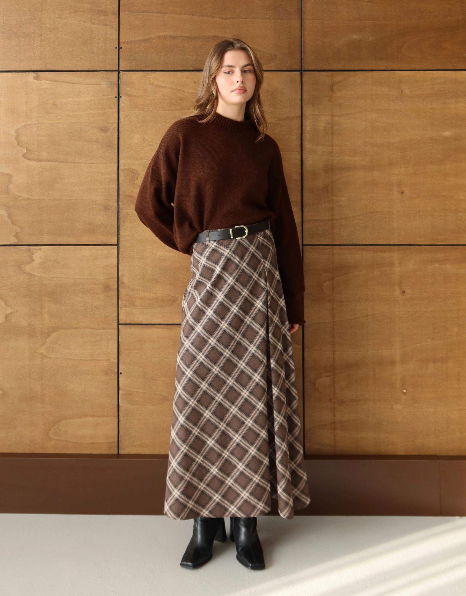 Yüksek bel kesimi ile vücut proporsiyonunu dengelerken, uzun boyu sayesinde hem günlük kombinlerde hem de ofis stilinde rahatlıkla kullanılabilir. Triko kazak, gömlek veya basic üstlerle kolayca kombinlenebilen bu ekose etek, sonbahar ve kış aylarının vazgeçilmez parçalarından biridir.