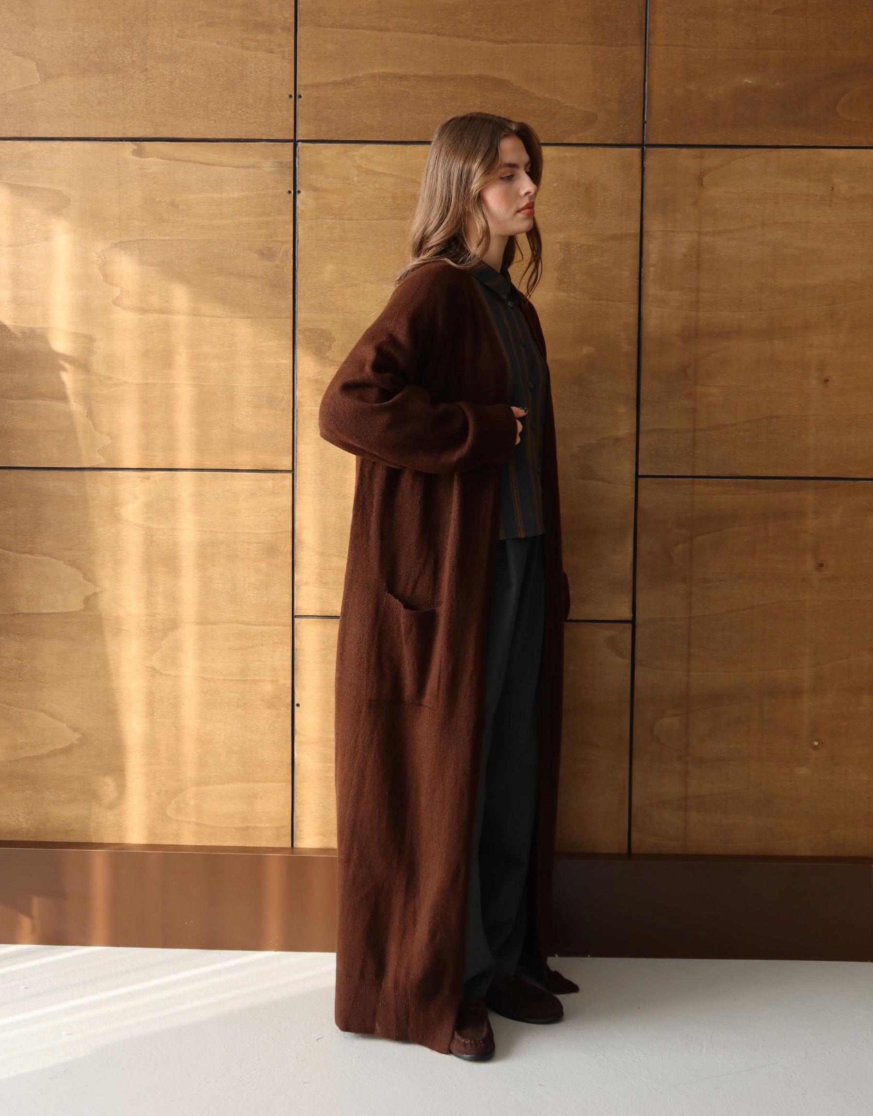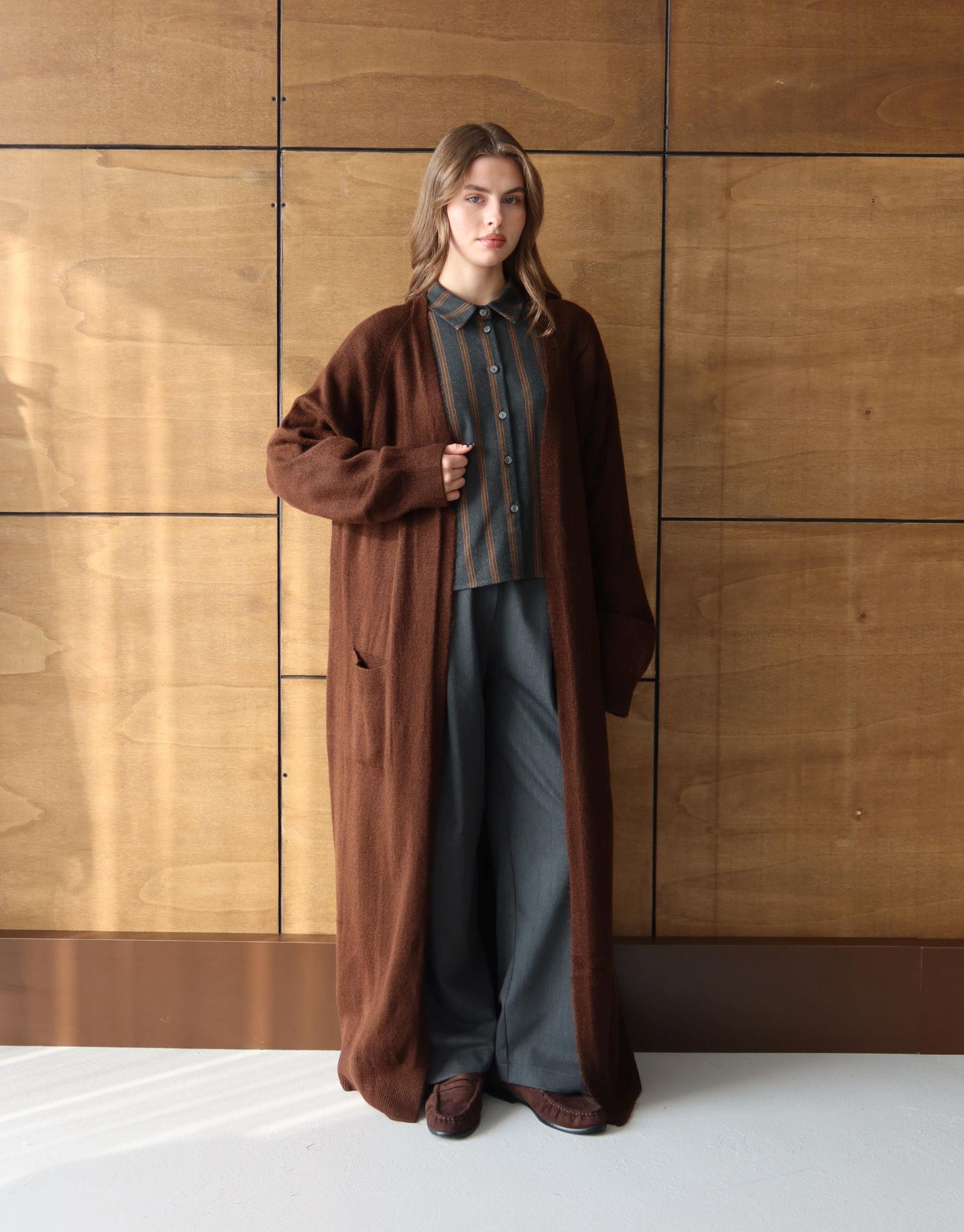 Uzun Triko Hırka Kahve | qooq-up