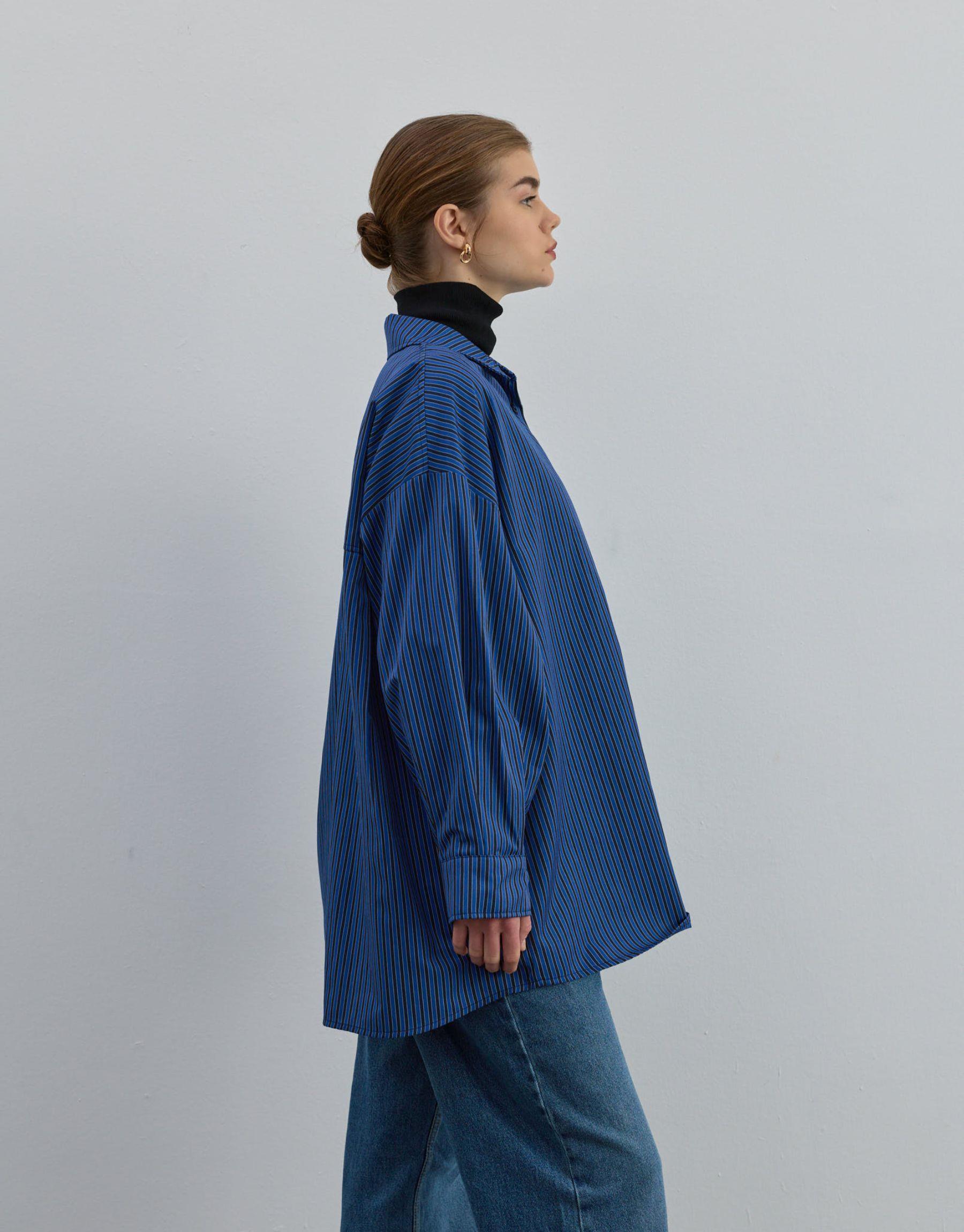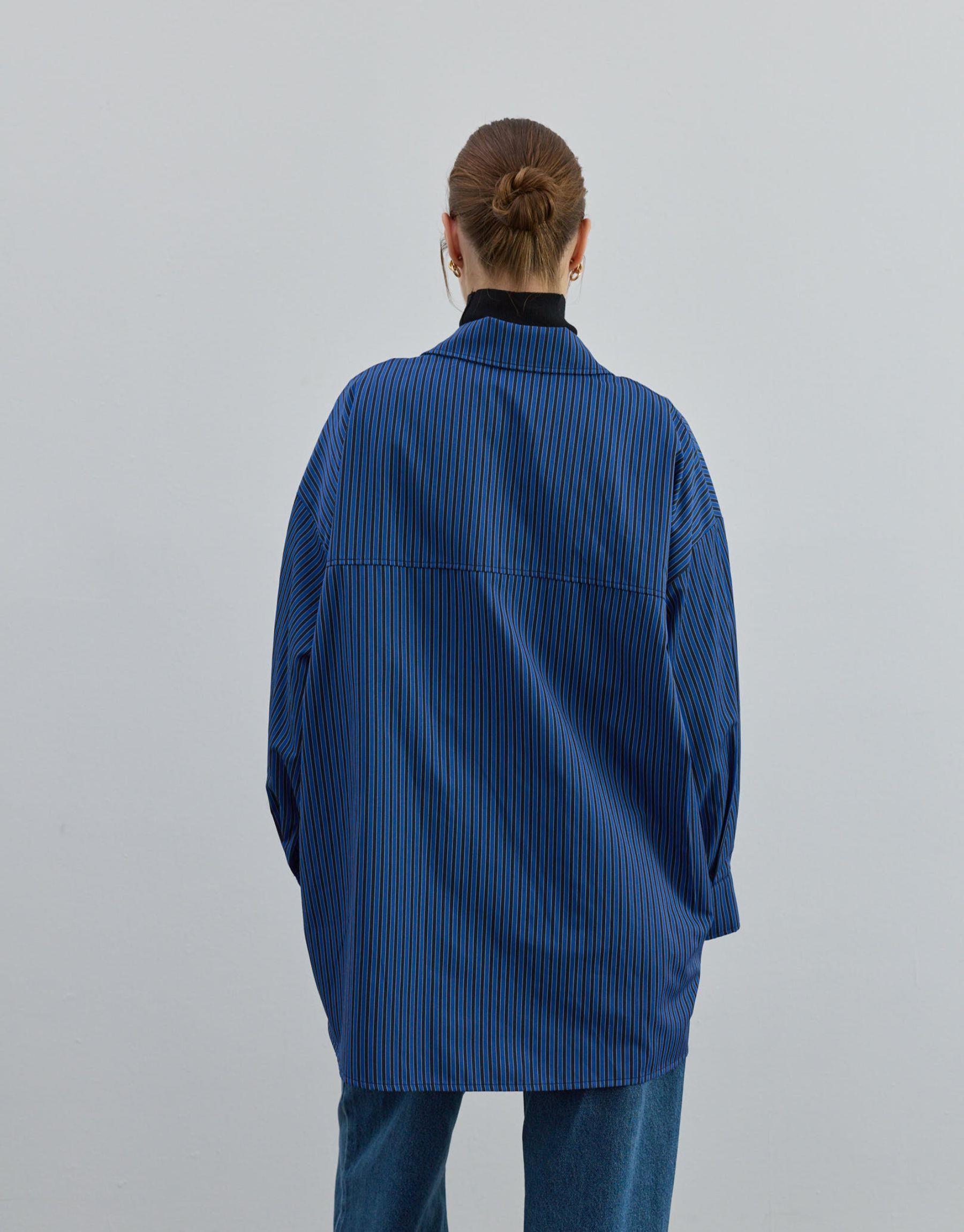 Oversize Desenli Gömlek Lacivert | qooq-up
