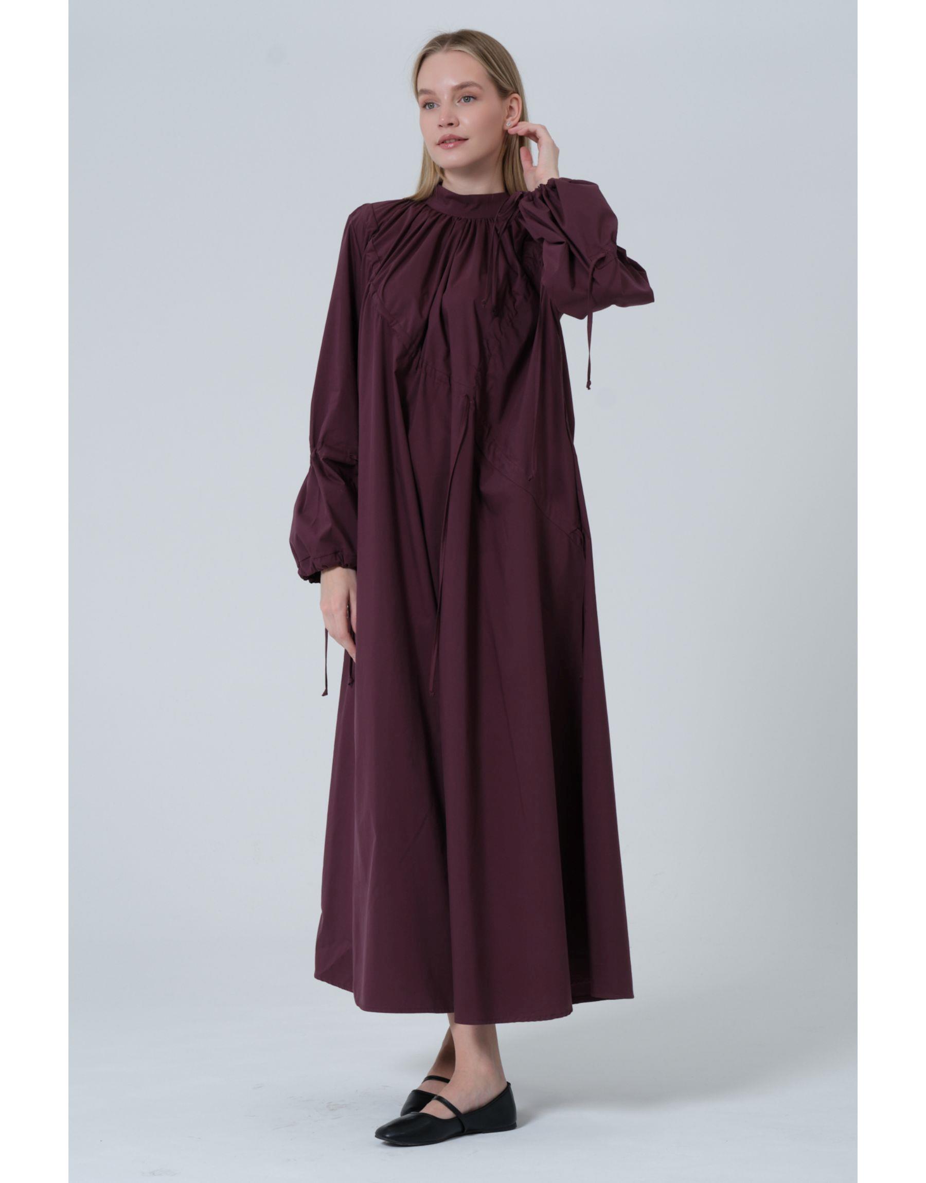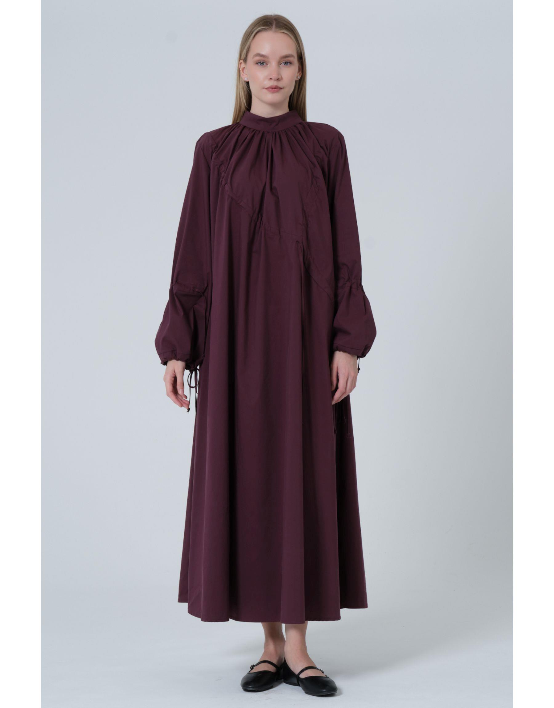 Büzgülü Elbise Mürdüm | qooq-up