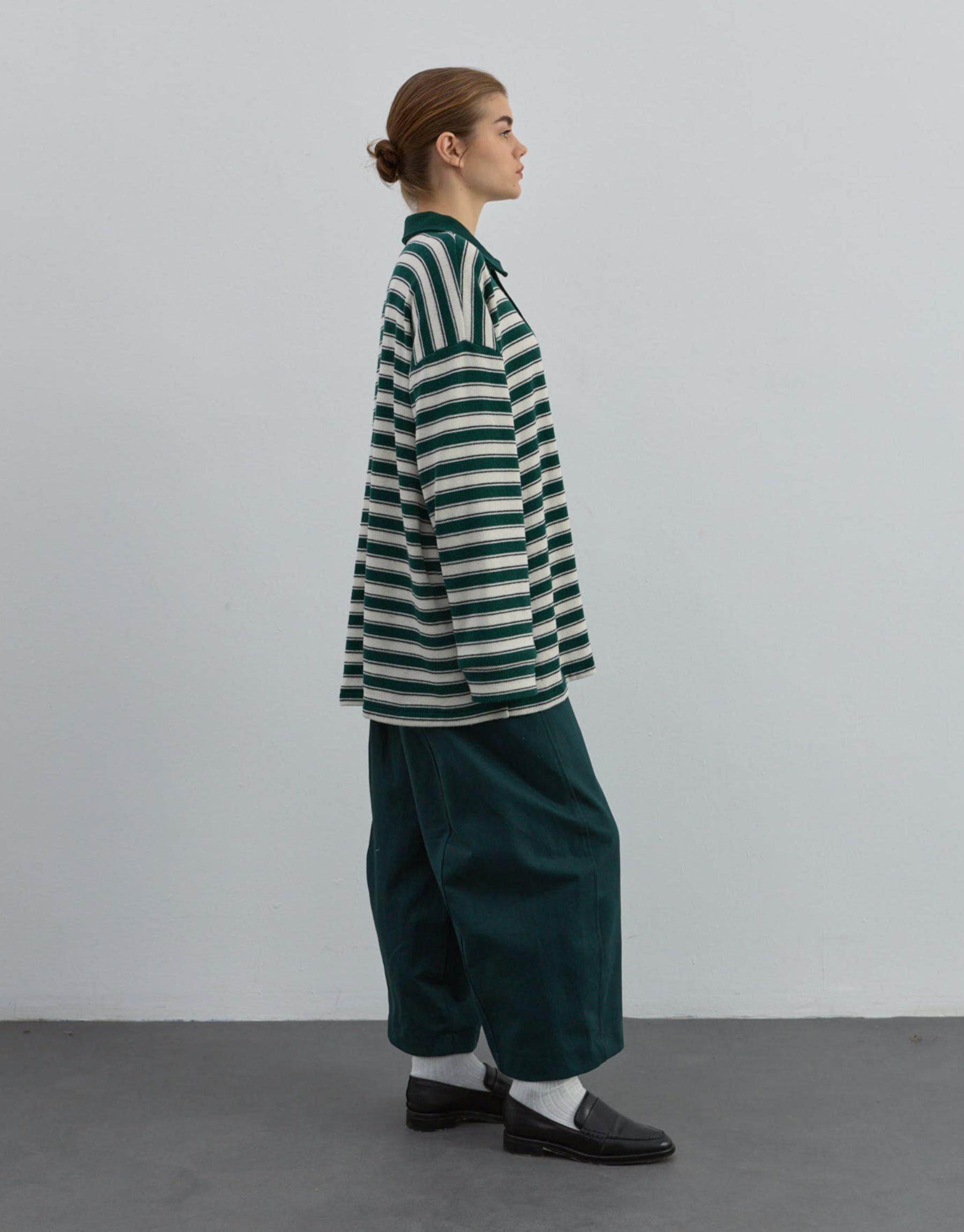 Düğmeli Çizgili Triko Yeşil | qooq-up